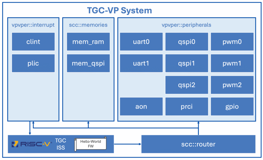 TGC-VP is a virtual platform built around a TGC core. It allows a fast and easy entry into the world of TGC-Core-Family series. Furthermore, this system is a good starting point for building any RISC-V based VP system.